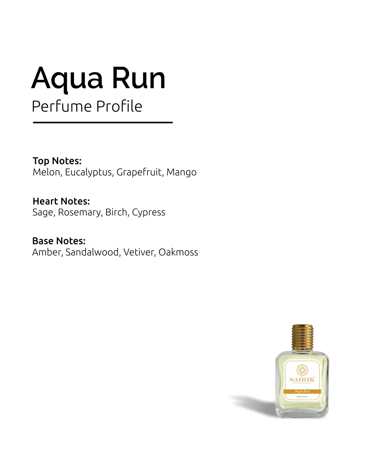 Product Overview: Inspired By Ck Escape, Aqua Run Is A Fresh, Aromatic Fragrance That Captures Freedom And Spontaneity. It Opens With Invigorating Melon And Eucalyptus, Transitions Into A Breezy Heart Of Sage And Rosemary, And Dries Down To A Warm Base Of Amber And Sandalwood.