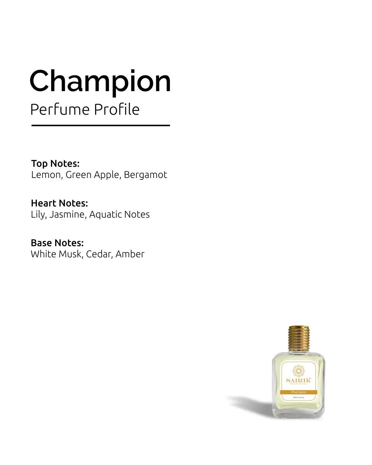 Product Overview: Inspired By Bianco, Champion Is A Clean And Energetic Scent, Featuring Crisp Citrus And Green Notes, A Heart Of White Florals And Aquatic Accords, And A Fresh, Musky Base That Lingers With Elegance.