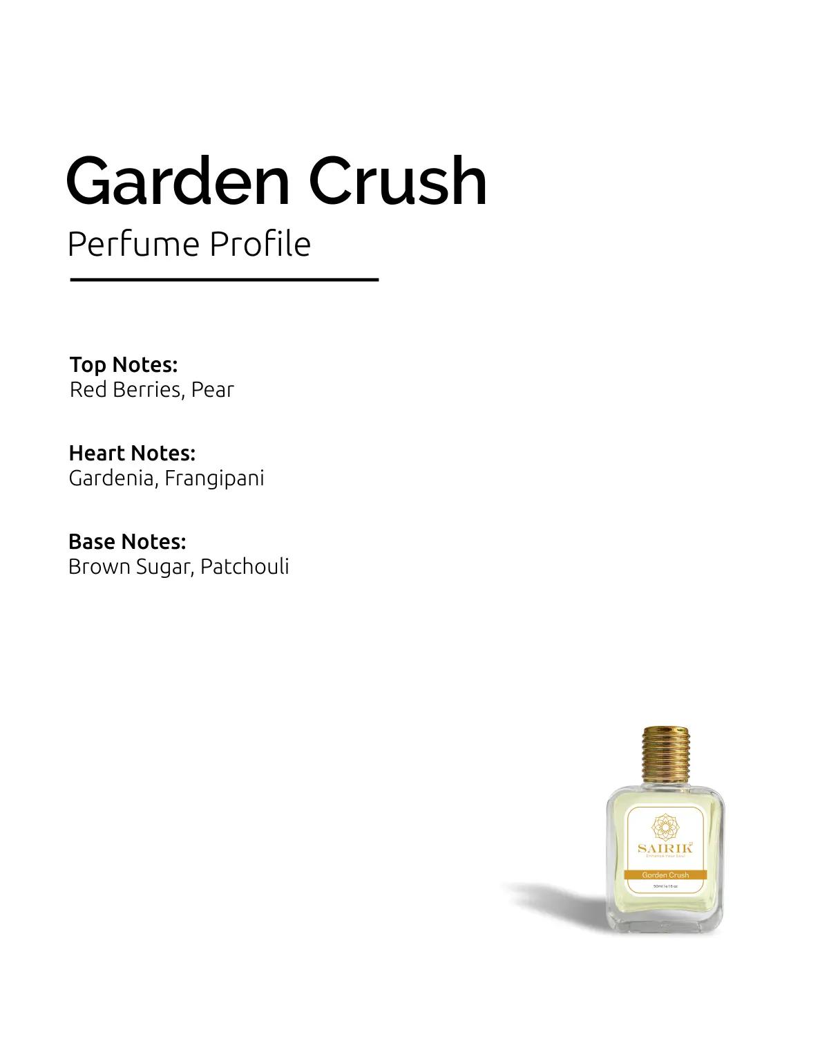 Product Overview: Inspired By Gucci Gorgeous Gardenia, Garden Crush Is A Joyful, Sweet Floral Fragrance Bursting With Feminine Charm. It Opens With Radiant Red Berries And Pear, Blossoms Into A Heart Of White Gardenia And Frangipani, And Finishes With A Creamy Base Of Brown Sugar And Patchouli.