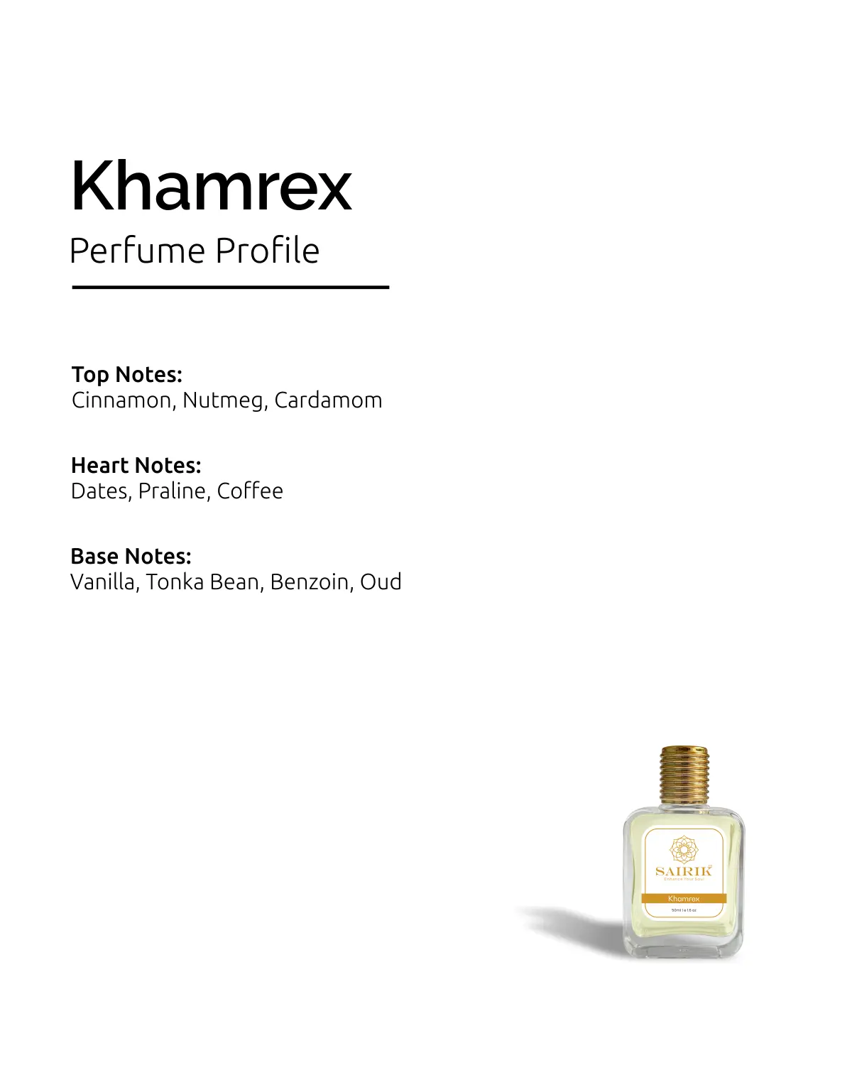 Product Overview: Inspired By Khamrah Qawa, Khamrex Is A Bold Gourmand-spicy Fragrance. It Opens With Rich Cinnamon And Nutmeg, Deepens Into A Heart Of Dates, Praline, And Coffee, And Finishes On A Warm Base Of Vanilla, Tonka Bean, And Oud.