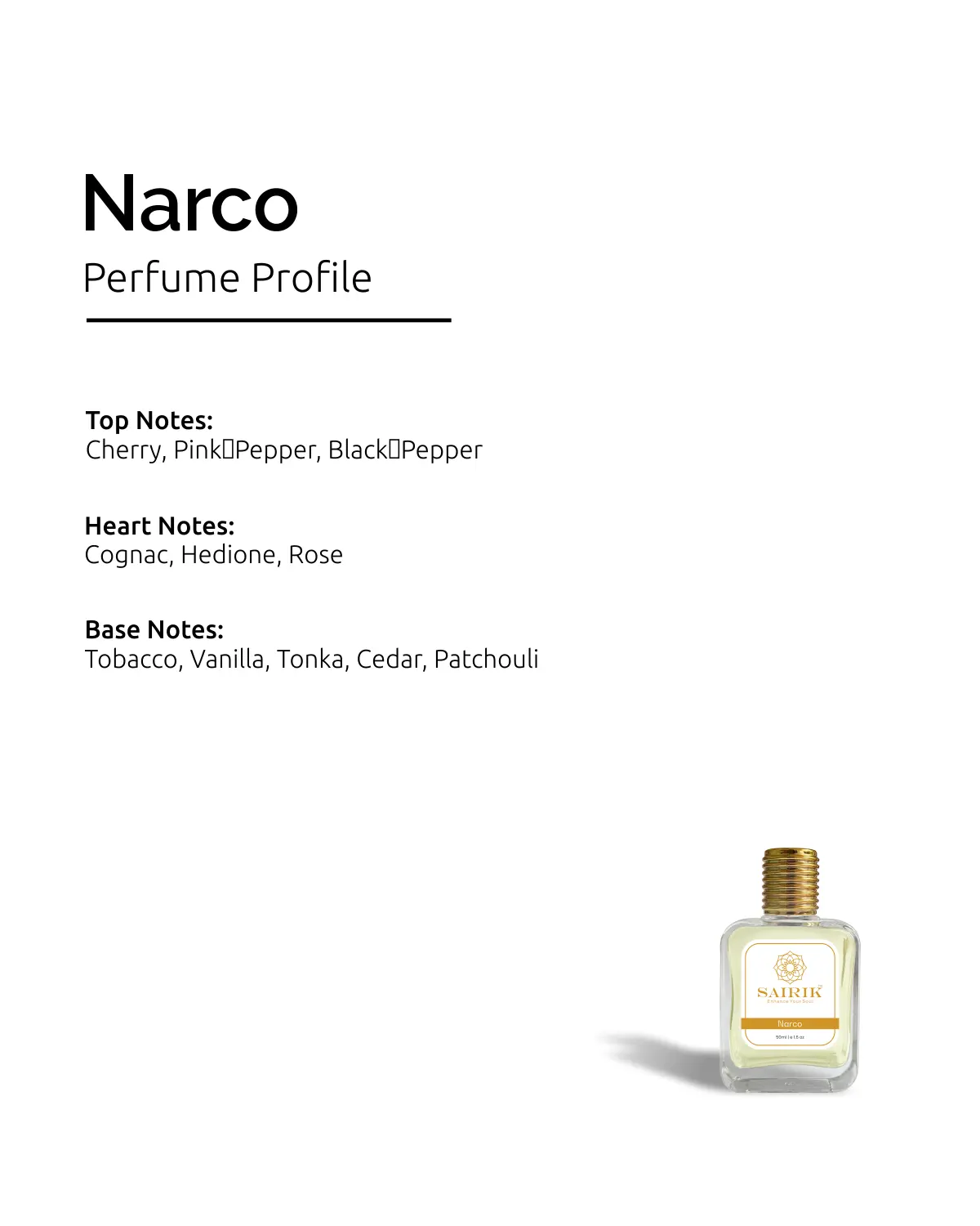 - Base: Tobacco, Vanilla, Tonka, Cedar, Patchouli
