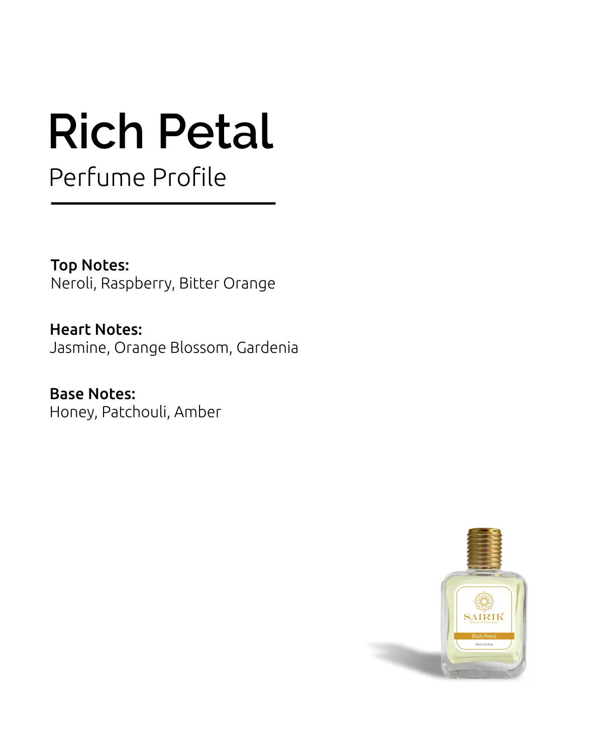 Product Overview: Inspired By Lady Million, Rich Petal Is A Dazzling White Floral Fragrance With Golden Glamour. It Opens With Sparkling Neroli And Raspberry, Reveals A Radiant Heart Of Jasmine And Orange Blossom, And Settles Into A Warm, Seductive Base Of Honey And Patchouli.