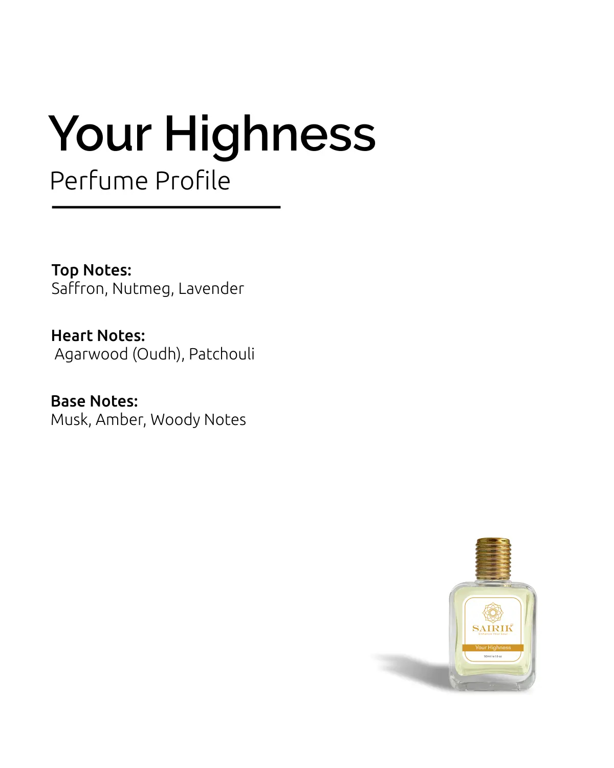 Product Overview: Inspired By Oudh The Greatness, Your Highness Is A Majestic Oriental Scent, Opening With Saffron And Lavender, Evolving Into A Heart Of Agarwood And Patchouli, And Finishing With A Bold Base Of Musk And Amber.